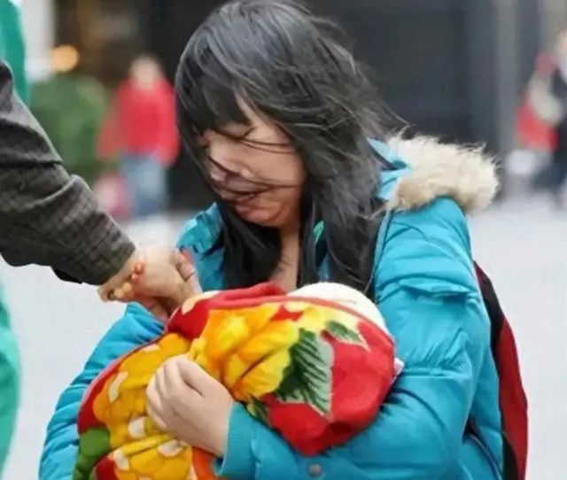 广州大道上,一位母亲抱着几个月大的女儿,以三步一磕的方式一路跪行。