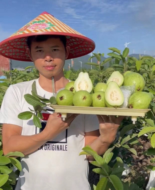 为了维持生计,现在的石金泉,在农村老家,经营着一片番石榴地,在直播卖果。