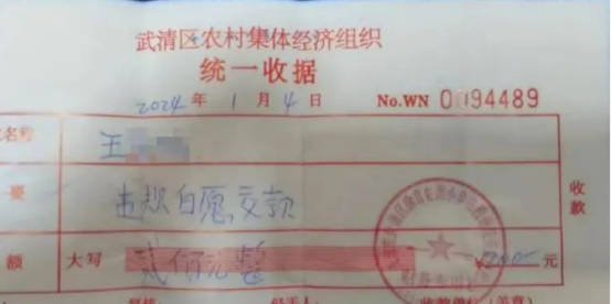 无奈之下,王先生只得给其转账了200元,1月4号,联络群里发出了4张罚款收据,其中一张就写的王先生的名字。