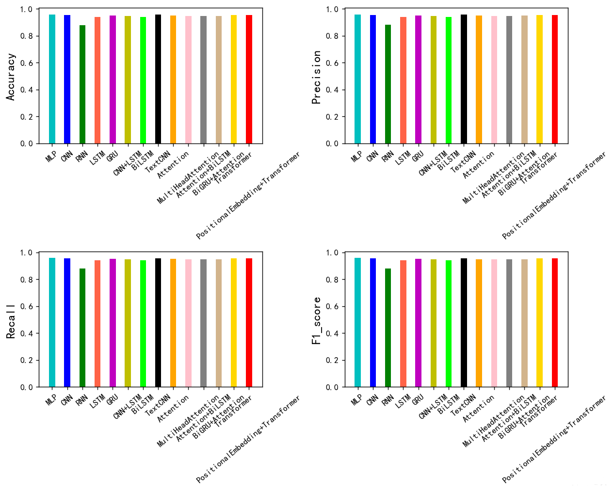 其实模型都差不多,准确率都是95%左右,就RNN离
