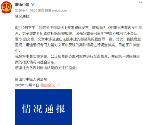 小邸的案子被媒体报道后,2020年9月,唐山中院发布了一份情况通报,称已经组织专门力量对案件情况进行调查核实。