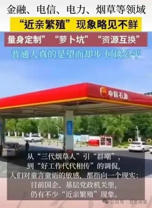 金融、电力、电信、烟草等行业更是世袭制的重灾区,这种现象令人触目惊心。