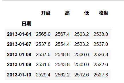 data0=pd.read_csv('沪深300期货历史数据 (2).csv',parse_dates=['日期']).set_index('日期')[['开盘','高','低','收盘']].sort_index()