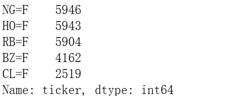 查看一下每个原油的数据量多少